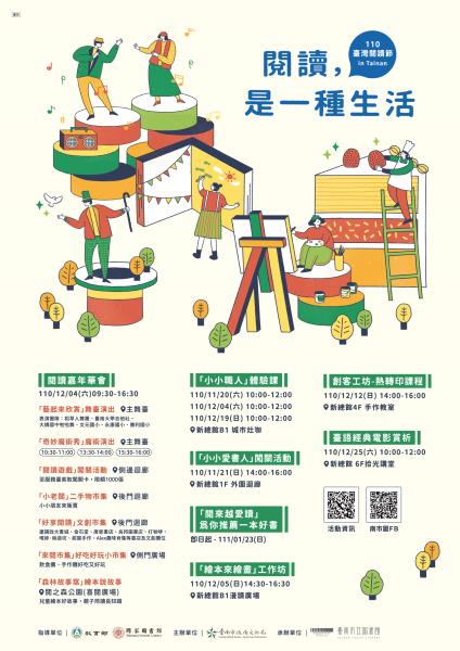 2021年度臺灣閱讀節以「閱讀,是一種生活」為名,將說故事、講座、讀劇、手作、嘉年華會等面向拓展,擴充閱讀之視角與意義,閱讀不限於紙本,也非單向接收,而是一種互動體驗,在閱讀中體驗生活,在生活裡品嘗閱讀。