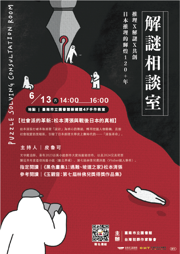 解謎相談室Chapter 1【罪案與文學的距離--台灣罪案紀實改編古今談】 加入行事曆
